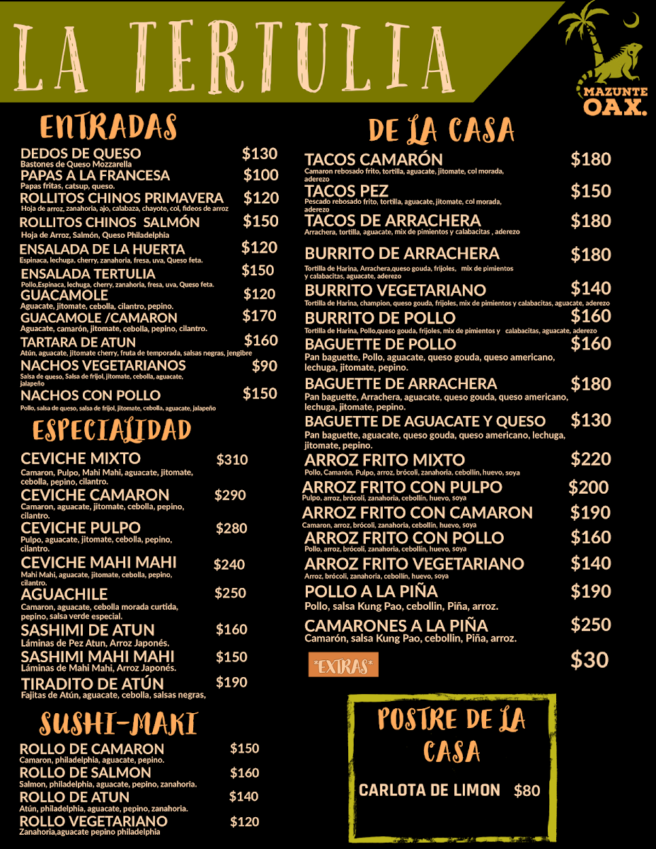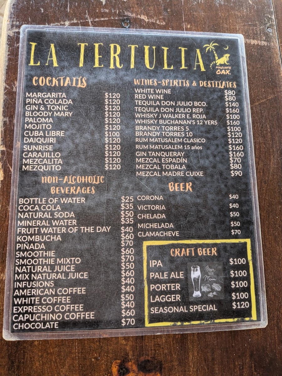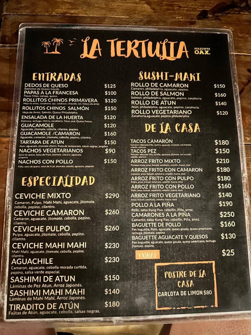 Welcome to La Tertulia Mazunte, a hidden gem nestled right by the stunning beach of Mazunte. This restaurant offers a delightful menu that captures the essence of coastal cuisine. Guests rave about the shrimp tacos, perfectly complemented by a refreshing mezcalita, and the tuna tiradito that elevates your dining experience while you soak in breathtaking ocean views.